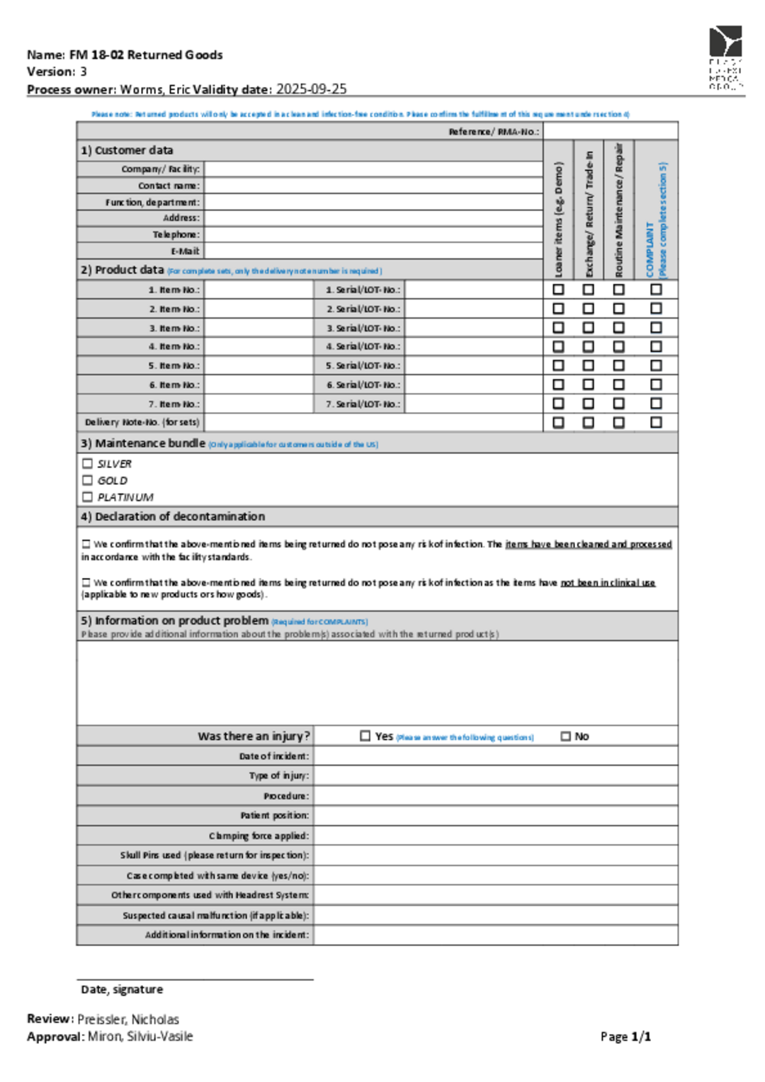 Please note that the forms differ according to the country.